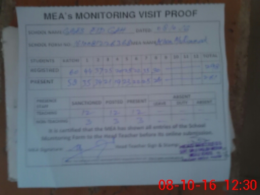 | Certified that this School was Inspected by the Undersigned MEA/DMO Today and the Information Stated Above is as Per Record. | |||||