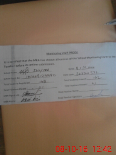 | Certified that this School was Inspected by the Undersigned MEA/DMO Today and the Information Stated Above is as Per Record. | |||||