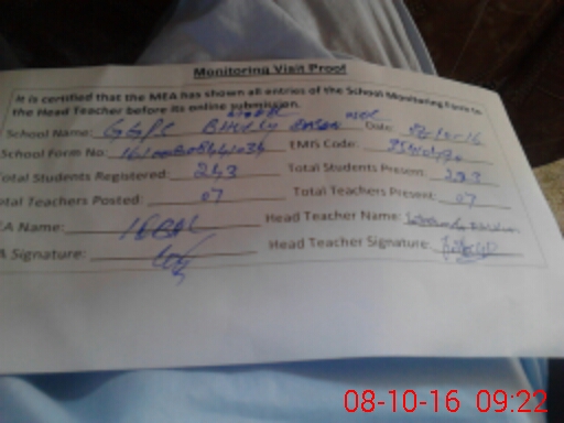| Certified that this School was Inspected by the Undersigned MEA/DMO Today and the Information Stated Above is as Per Record. | |||||