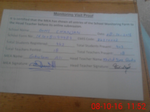 | EMIS Code: 32310002 | Name of School: GHS CHUNJAN | |||