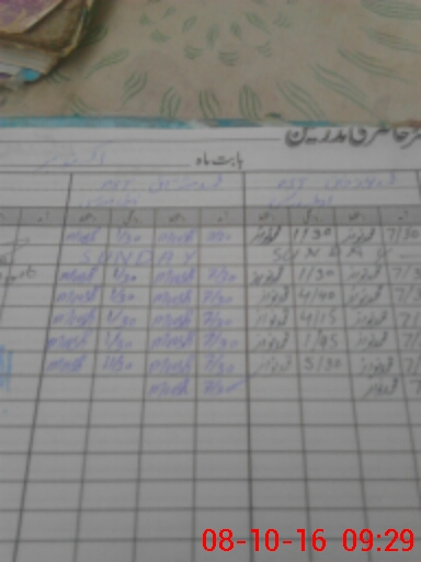 | CNIC | Full Name | Designation | R/C | Absence During Last Calender Month |