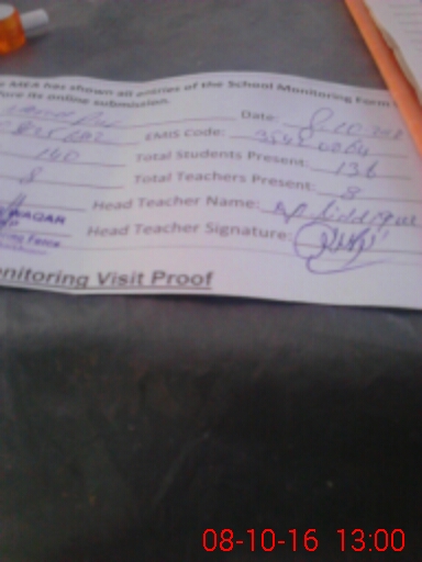 | Attendance Register | Head Teacher | MEA with School | Visit Proof |