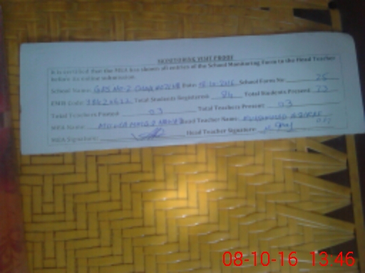| Attendance Register | Head Teacher | MEA with School | Visit Proof |