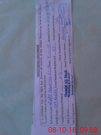 | Monitoring Date: 08-10-2016 | Start Time: 08-10-2016 09:37 AM | End Time: 08-10-2016 10:01 AM | Name of MEA: HA**** AL**** SH**** (L**** | |