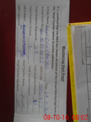 | Certified that this School was Inspected by the Undersigned MEA/DMO Today and the Information Stated Above is as Per Record. | |||||
