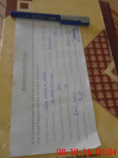 | Monitoring Date: 08-10-2016 | Start Time: 08-10-2016 08:53 AM | End Time: 08-10-2016 09:36 AM | Name of MEA: Mu**** Za**** -KP**** | |