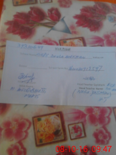 | School Visited by School Health & Nutrition Supervisor (No. of Visits) | 1 | Name1: | IMTIAZ AHMAD | Name2: | |