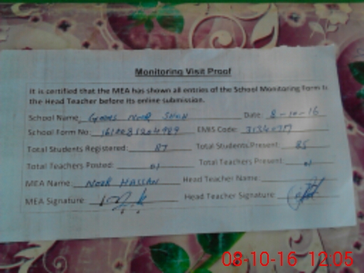 | Attendance Register | Head Teacher | MEA with School | Visit Proof |