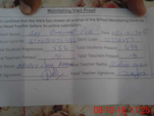 | EMIS Code: 32330053 | Name of School: GES CHUHAR PUR | |||