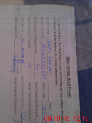 | Certified that this School was Inspected by the Undersigned MEA/DMO Today and the Information Stated Above is as Per Record. | |||||
