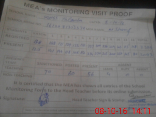 | Certified that this School was Inspected by the Undersigned MEA/DMO Today and the Information Stated Above is as Per Record. | |||||