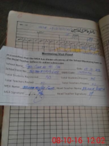 | Attendance Register | Head Teacher | MEA with School | Visit Proof |