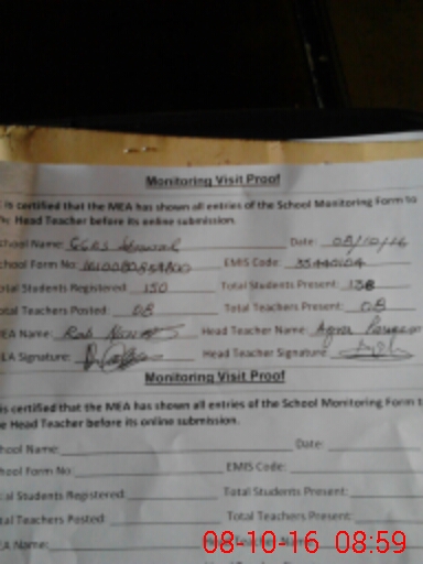 | Attendance Register | Head Teacher | MEA with School | Visit Proof |