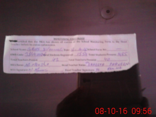 | Monitoring Date: 08-10-2016 | Start Time: 08-10-2016 08:25 AM | End Time: 08-10-2016 10:07 AM | Name of MEA: MU**** MA**** (R**** | |