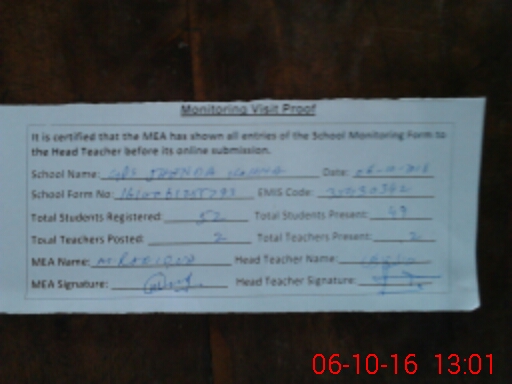 | Certified that this School was Inspected by the Undersigned MEA/DMO Today and the Information Stated Above is as Per Record. | |||||
