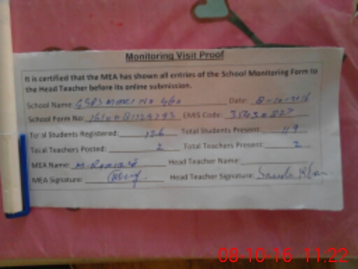 | Certified that this School was Inspected by the Undersigned MEA/DMO Today and the Information Stated Above is as Per Record. | |||||