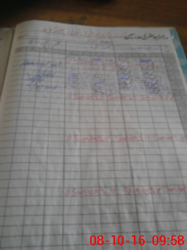 | CNIC | Full Name | Designation | R/C | Absence During Last Calender Month |