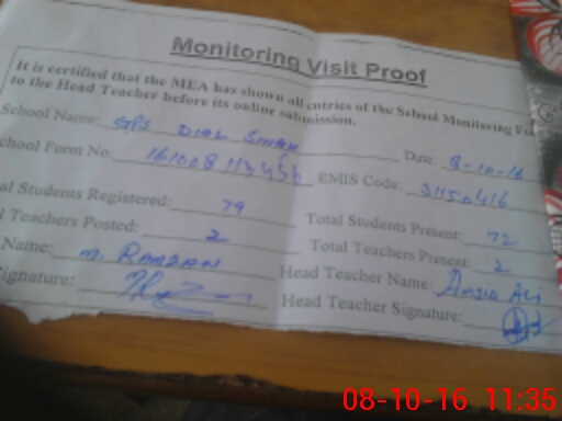 | Certified that this School was Inspected by the Undersigned MEA/DMO Today and the Information Stated Above is as Per Record. | |||||