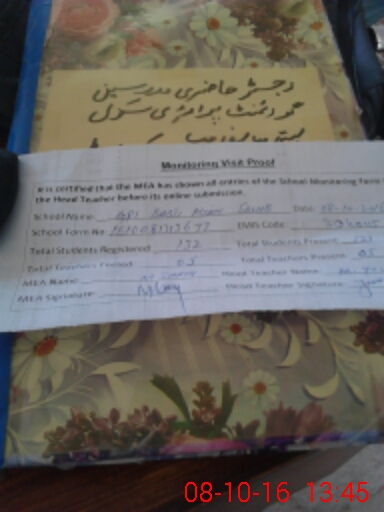| Attendance Register | Head Teacher | MEA with School | Visit Proof |