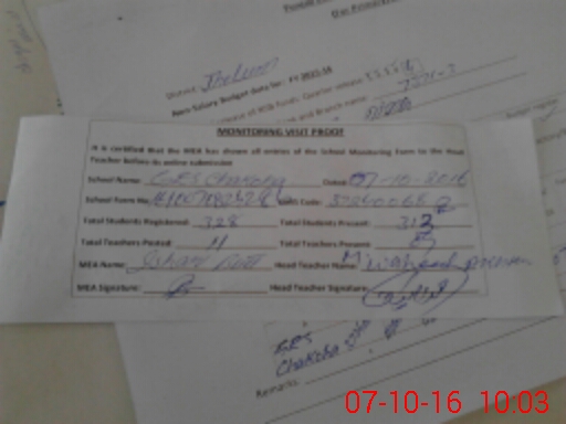 | Attendance Register | Head Teacher | MEA with School | Visit Proof |