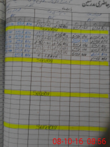 | CNIC | Full Name | Designation | R/C | Absence During Last Calender Month |