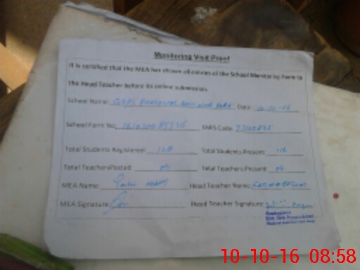 | Attendance Register | Head Teacher | MEA with School | Visit Proof |