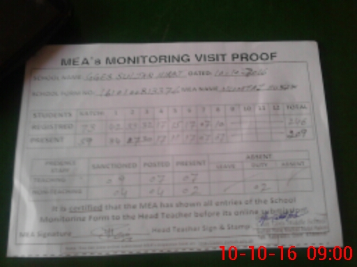 | Attendance Register | Head Teacher | MEA with School | Visit Proof |