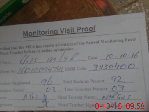 | Attendance Register | Head Teacher | MEA with School | Visit Proof |