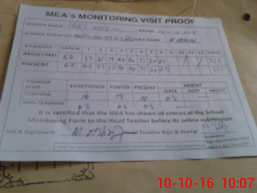 | Attendance Register | Head Teacher | MEA with School | Visit Proof |