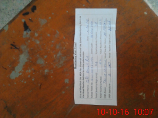| Monitoring Date: 10-10-2016 | Start Time: 10-10-2016 09:39 AM | End Time: 10-10-2016 10:08 AM | Name of MEA: Ta**** Hu**** | |