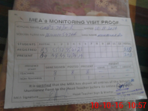 | Attendance Register | Head Teacher | MEA with School | Visit Proof |