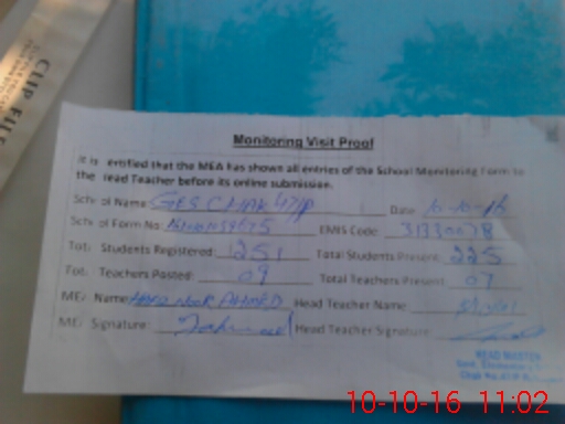 | Certified that this School was Inspected by the Undersigned MEA/DMO Today and the Information Stated Above is as Per Record. | |||||