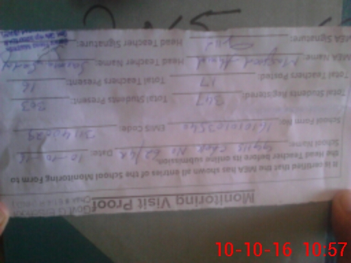 | Attendance Register | Head Teacher | MEA with School | Visit Proof |