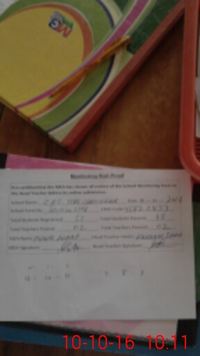 | Monitoring Date: 10-10-2016 | Start Time: 10-10-2016 09:42 AM | End Time: 10-10-2016 10:22 AM | Name of MEA: Mu**** Ah**** (R**** | |
