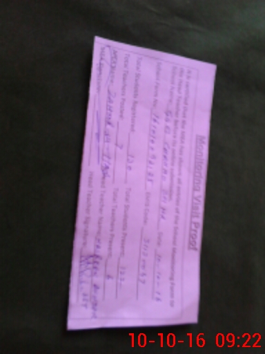 | Monitoring Date: 10-10-2016 | Start Time: 10-10-2016 08:47 AM | End Time: 10-10-2016 09:28 AM | Name of MEA: Za**** BN**** | |