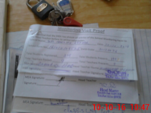 | Attendance Register | Head Teacher | MEA with School | Visit Proof |
