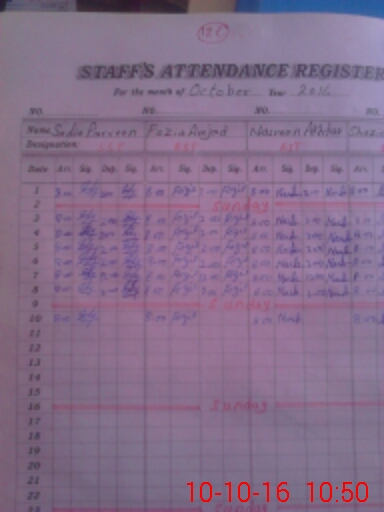 | CNIC | Full Name | Designation | R/C | Absence During Last Calender Month |
