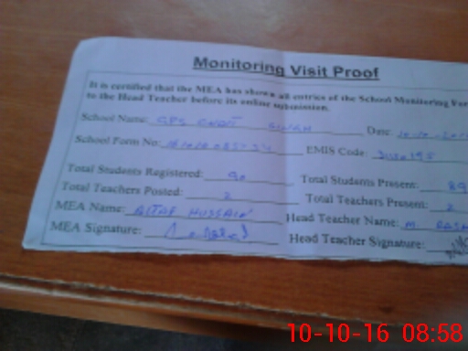 | Certified that this School was Inspected by the Undersigned MEA/DMO Today and the Information Stated Above is as Per Record. | |||||