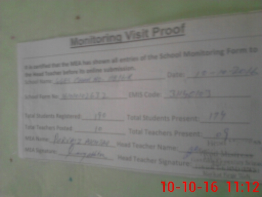 | Certified that this School was Inspected by the Undersigned MEA/DMO Today and the Information Stated Above is as Per Record. | |||||