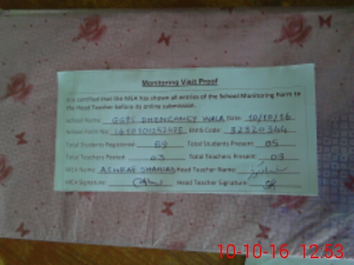 | Certified that this School was Inspected by the Undersigned MEA/DMO Today and the Information Stated Above is as Per Record. | |||||