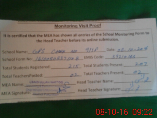 | EMIS Code: 39210166 | Name of School: GPS 9 SP | |||