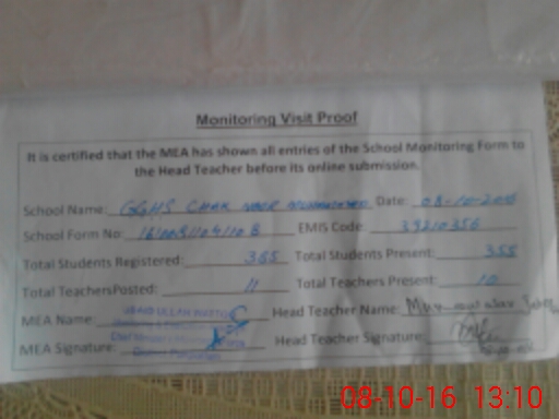| EMIS Code: 39210356 | Name of School: GGHS CHAK NOOR MUHAMMAD 11/SP | |||
