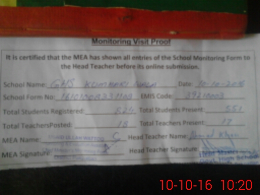 | Certified that this School was Inspected by the Undersigned MEA/DMO Today and the Information Stated Above is as Per Record. | |||||