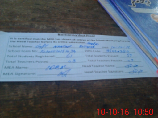 | Attendance Register | Head Teacher | MEA with School | Visit Proof |