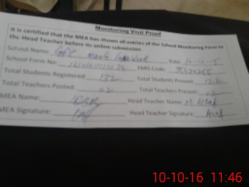 | Certified that this School was Inspected by the Undersigned MEA/DMO Today and the Information Stated Above is as Per Record. | |||||