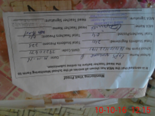 | Attendance Register | Head Teacher | MEA with School | Visit Proof |