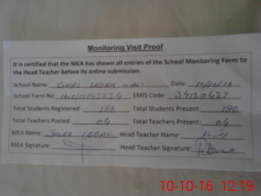 | EMIS Code: 34120427 | Name of School: GMPS SADAN WALI | |||