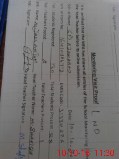 | Certified that this School was Inspected by the Undersigned MEA/DMO Today and the Information Stated Above is as Per Record. | |||||
