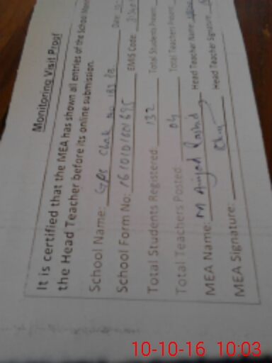 | Attendance Register | Head Teacher | MEA with School | Visit Proof |