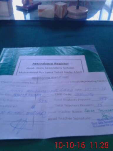 | EMIS Code: 31340096 | Name of School: GGHS MUHAMMAD PUR LAMMA | |||